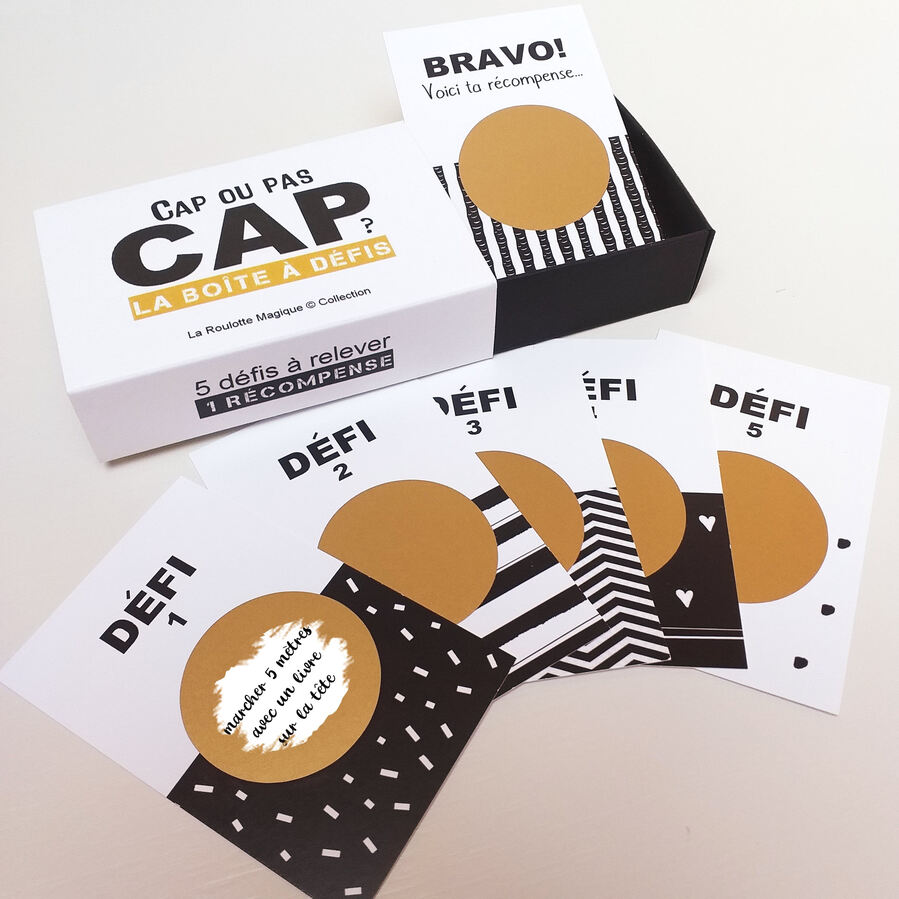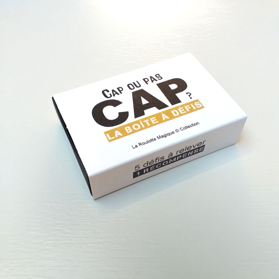 La boîte à défis Cap ou pas cap, une idée de cadeau original 100% personnalisable à offrir à tous vos proches qui aiment relever les défis. A vous de trouver 5 défis et 1 récompense!