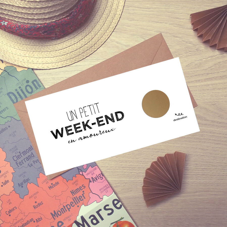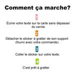 Vous avez prévu d'offrir un voyage à votre proche? Faites-lui la surprise de la destination en lui offrant notre carte à gratter ! La carte est à personnaliser par vos soins. C'est à vous de la remplir intégralement. Même la destination surprise. Il vous suffit d'écrire la destination dans le cercle et de coller la pastille à gratter dessus (fournie avec votre commande). C'est très simple. Un mode d'emploi vous sera fourni avec votre commande.