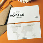 Vous avez prévu d'offrir un voyage à votre proche? Faites-lui la surprise de la destination en lui offrant notre carte à gratter! La carte est à personnaliser par vos soins. C'est à vous de la remplir intégralement. Même la destination surprise. Il vous suffit d'écrire la destination dans le cercle et de coller la pastille à gratter dessus (fournie avec votre commande). C'est très simple. Un mode d'emploi vous sera fourni avec votre commande.