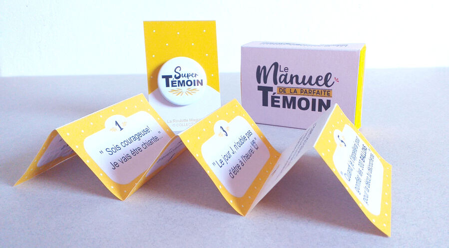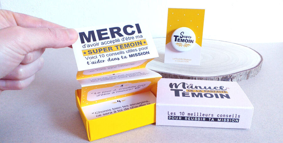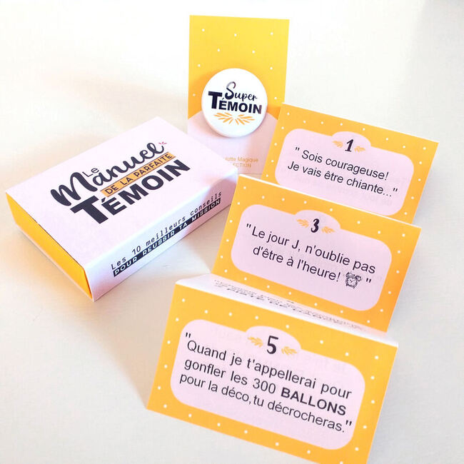 A la recherche d'un cadeau original et unique pour votre témoin? Craquez pour notre manuel de la parfaite Témoin, une parenthèse légère et rigolote à offrir pour remercier votre Témoin de sa présence et de son soutien ainsi qu'un badge qu'elle pourra arborer fièrement lors du mariage. (Existe aussi en version témoin Homme dans la catégorie Mariage)