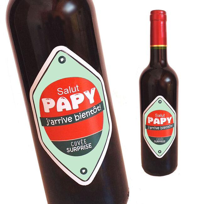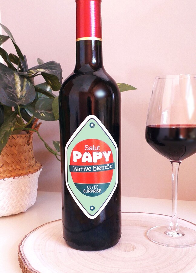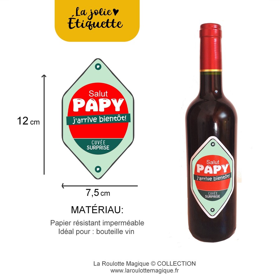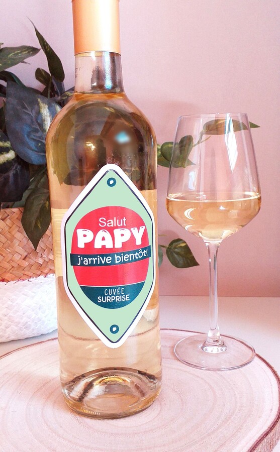 La famille s'agrandit et vous souhaitez l'annoncer au futur Papy de manière originale? Surprenez-le avec notre jolie étiquette pour bouteille! Imprimée sur un papier ultra résistant et imperméable, notre étiquette se colle très facilement.